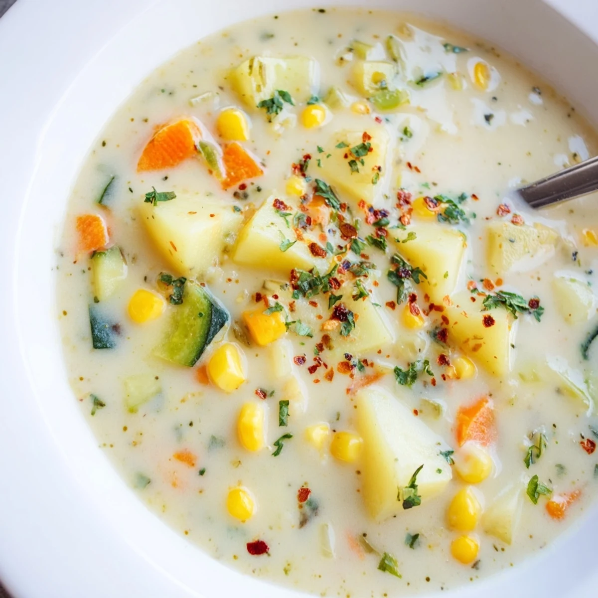 This hearty vegetable soup combines tender potatoes, sweet corn, and fresh zucchini in a rich, creamy broth. Ready in just 45 minutes, it delivers satisfying chunks of vegetables in every spoonful. The smoked paprika adds subtle depth while thyme provides classic herbal notes. Partial blending creates the perfect texture—velvety yet substantial enough to feel like a complete meal. Whether you're feeding your family or meal prepping for the week, this nourishing soup delivers comfort and sustenance without hours of effort.